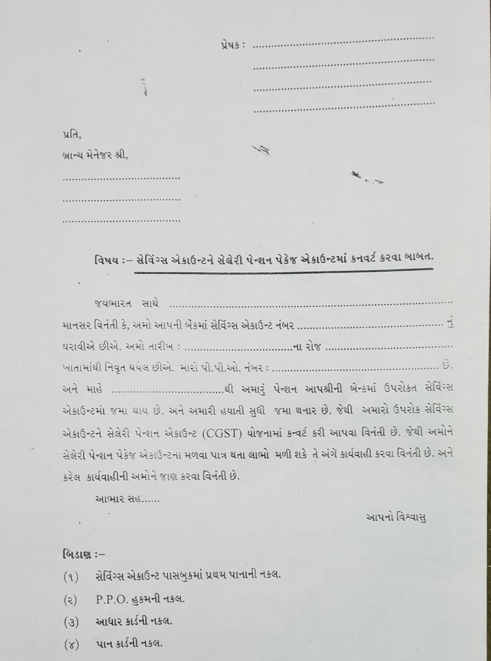બેંક ખાતામાં પૅન્શન ખાતા ના લાભ લેવા અંગે