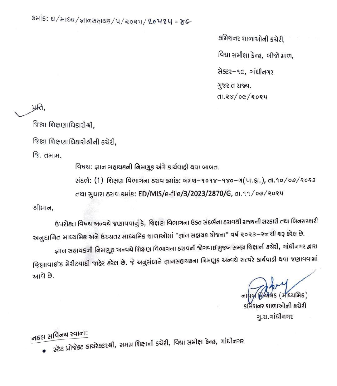 કમિશ્નર શાળાઓની કચેરીના પત્રો