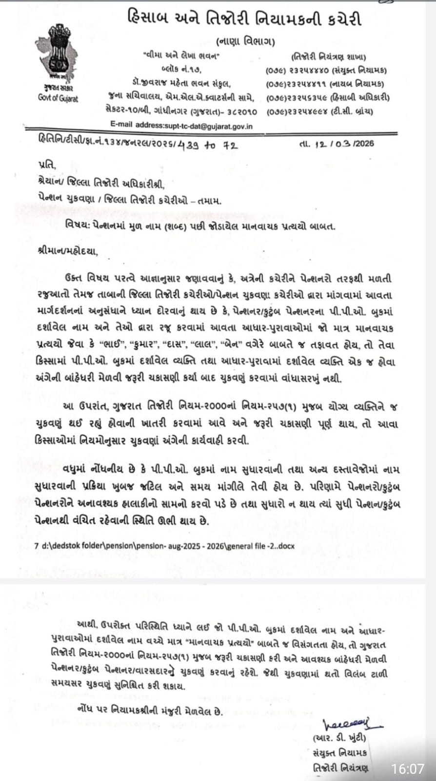 પેન્શન -નિવૃતિના પરિપત્ર