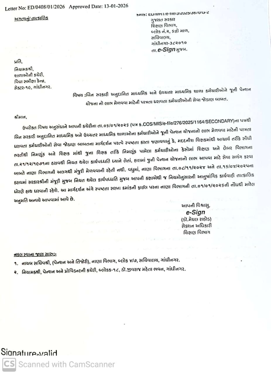 પેન્શન -નિવૃતિના પરિપત્ર